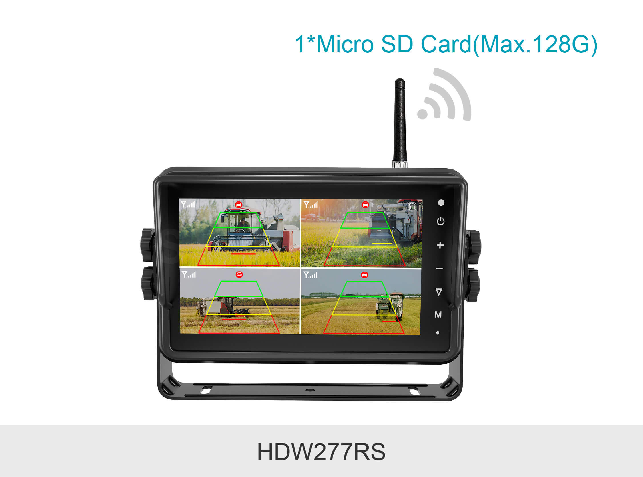 敏视7寸带智能算法无线车载录像监控显示器集无线传输技术、AI行人&车辆侦测算法和录像功能于一体,安装方便的同时支持实时检测车辆周围的行人和车辆,及时提醒驾驶员注意潜在风险并避免碰撞,助力行车安全!显示器具有防水外壳,配备录像和触屏功能;空旷传输距离最远达180m,信号稳定抗干扰,适用于卡车,叉车,矿车等各种车辆。