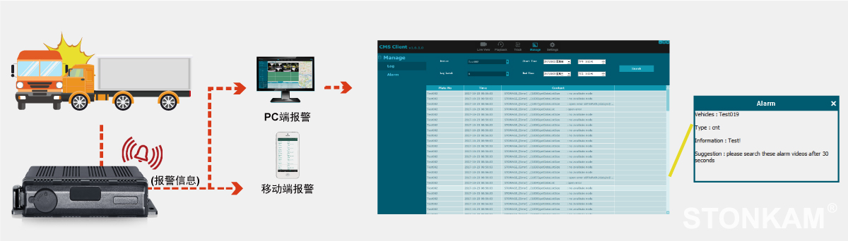 报警录像、报警信息、日志信息自动上传、统计和提醒