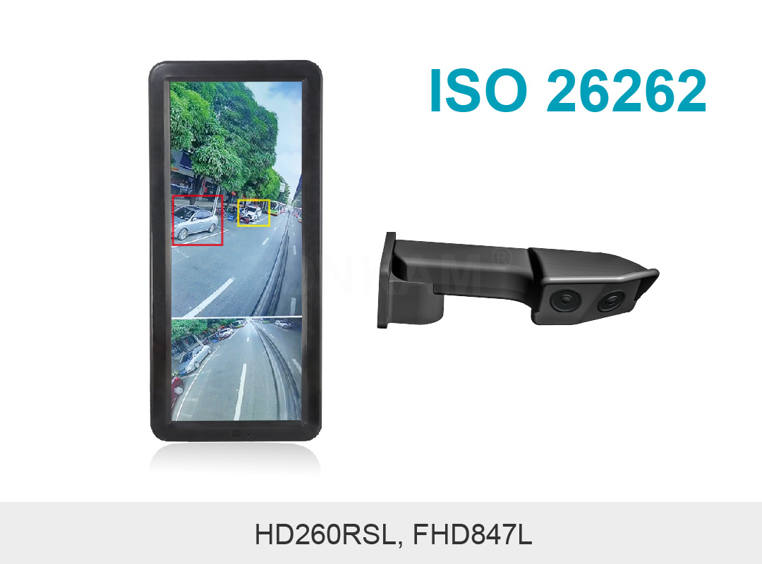 敏视15寸大车盲区监控智能电子后视镜系统通过ISO 26262认证, 符合UN ECE R46法规要求,提供卓越的视野和安全性。